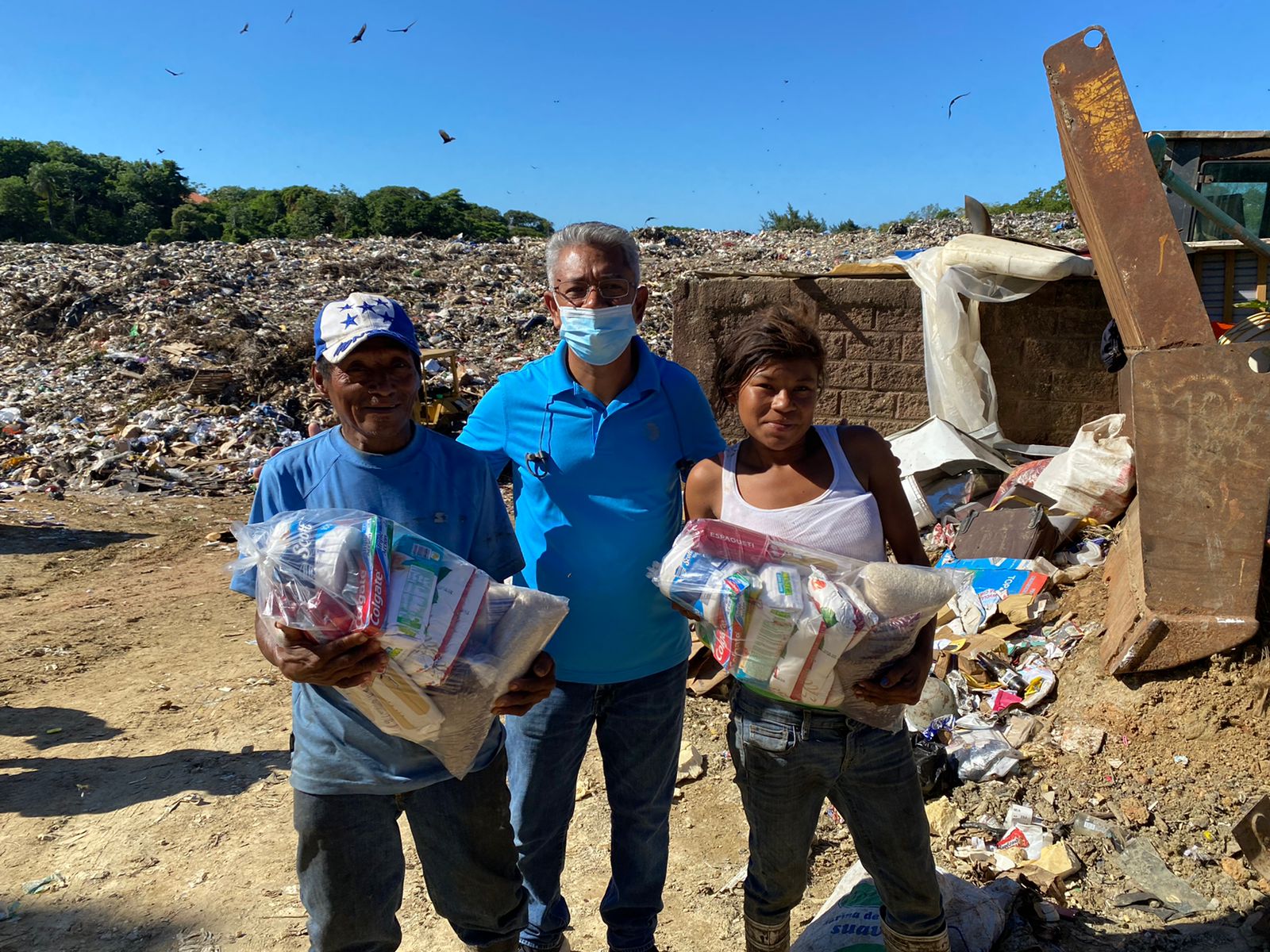 During the Christmas season with the help of the youth from the Church we went to the dump to distribute grocery hampers filled with basic products. We also delivered groceries to other families around Coxen Hole.